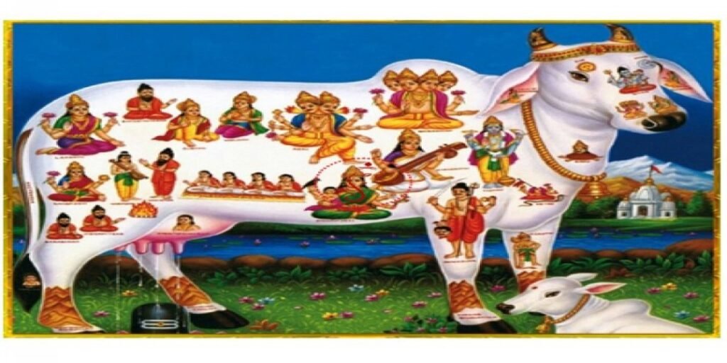 मान्यता है कि गाय के सींगों में ब्रह्मा और विष्णु का निवास है। गाय के सिर में महादेव, माथे पर गौरी और नथनों में कार्तिकेय का वास है। आंखों में सूर्य-चंद्रमा, नाक में कम्बल और अश्वतर नाग, कानों में अश्विनी कुमार, दांतों में वासुदेव, जीभ में वरुण और गले में देवराज इंद्र, बालों में सूर्य की किरणें, खुर में गंधर्व, पेट में पृथ्वी और चारों थनों में चारों समुद्र रहते हैं। गोमुत्र में गंगा और गोबर में यमुना का निवास माना है।
