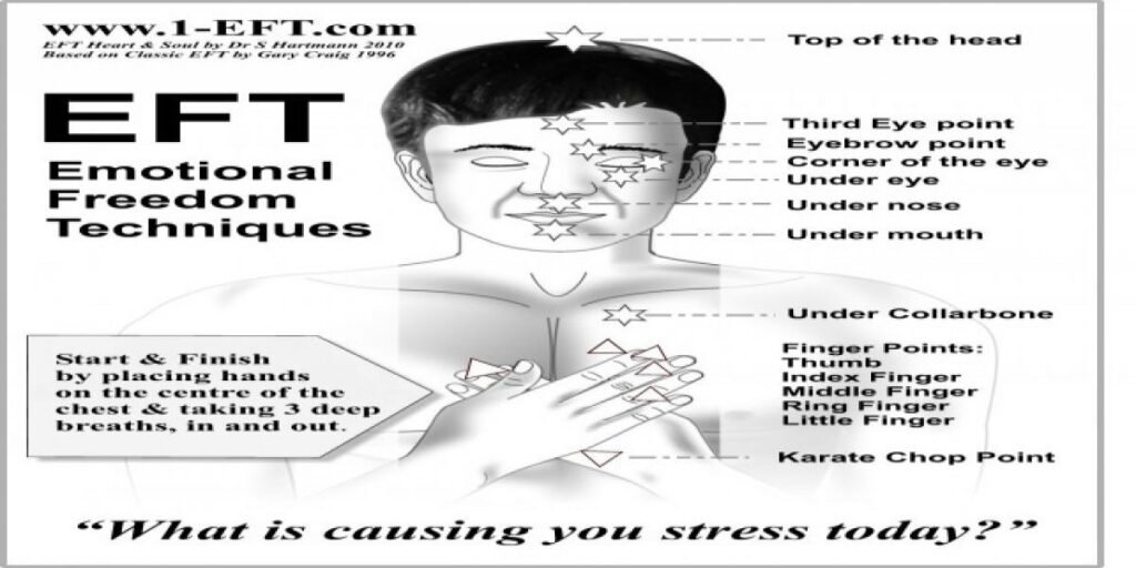 एक्यूपंक्चर के समान, ईएफटी आपके शरीर की ऊर्जा के संतुलन को बहाल करने के लिए मध्याह्न बिंदुओं – या ऊर्जा गर्म स्थानों पर केंद्रित है। यह माना जाता है कि इस ऊर्जा संतुलन को बहाल करने से लक्षणों को एक नकारात्मक अनुभव से छुटकारा मिल सकता है या भावनाएं उत्पन्न हो सकती हैं। चीनी चिकित्सा के आधार पर, मेरिडियन बिंदुओं के बारे में सोचा जाता है, क्योंकि शरीर की ऊर्जा के क्षेत्रों में प्रवाह होता है। ये रास्ते आपके स्वास्थ्य को बनाए रखने के लिए ऊर्जा प्रवाह को संतुलित करने में मदद करते हैं। कोई भी असंतुलन बीमारी या बीमारी को प्रभावित कर सकता है।